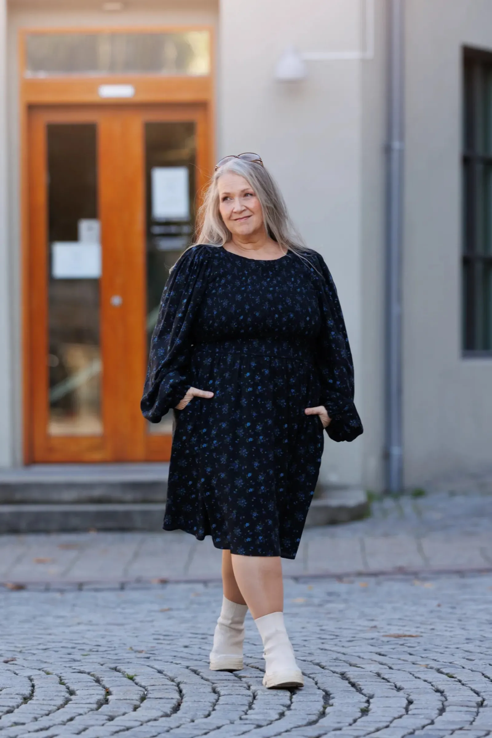 Med sitt nydelige snitt og lekre ballongermer kan den brukes både til hverdager og festdager.