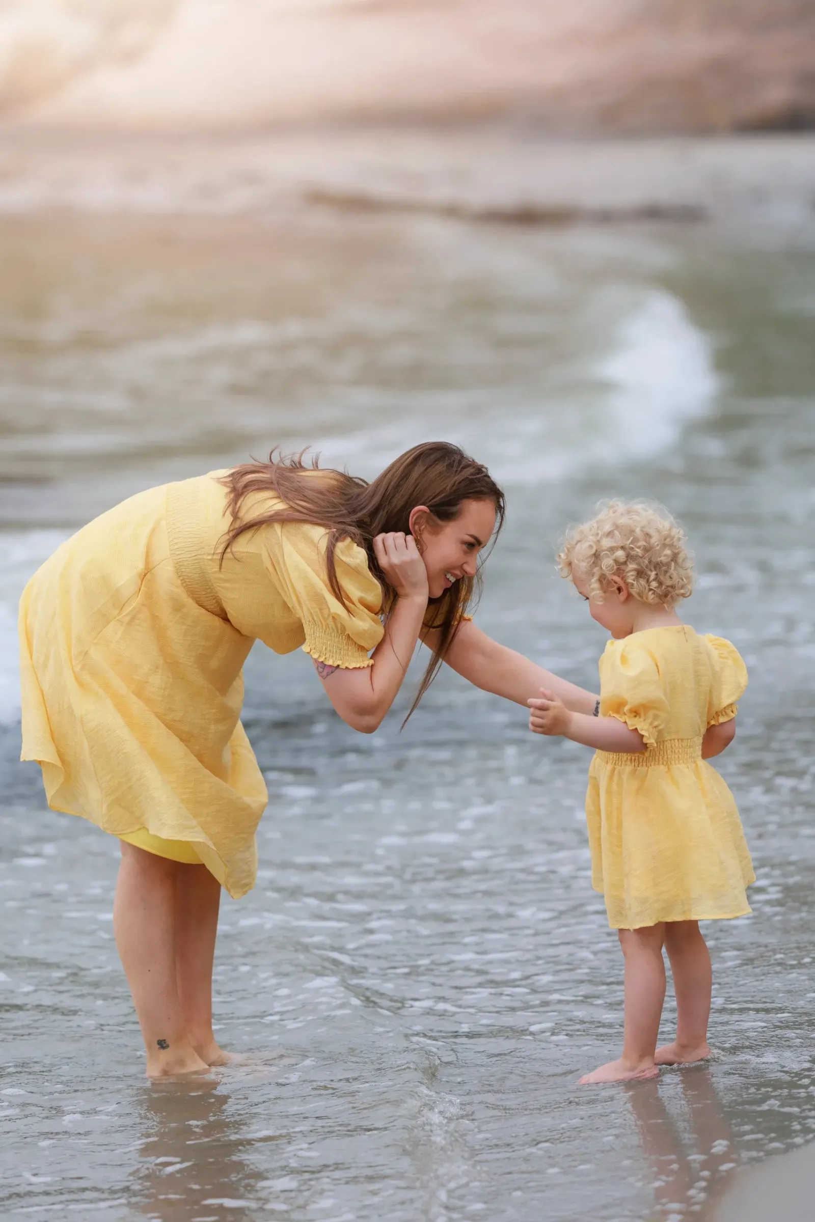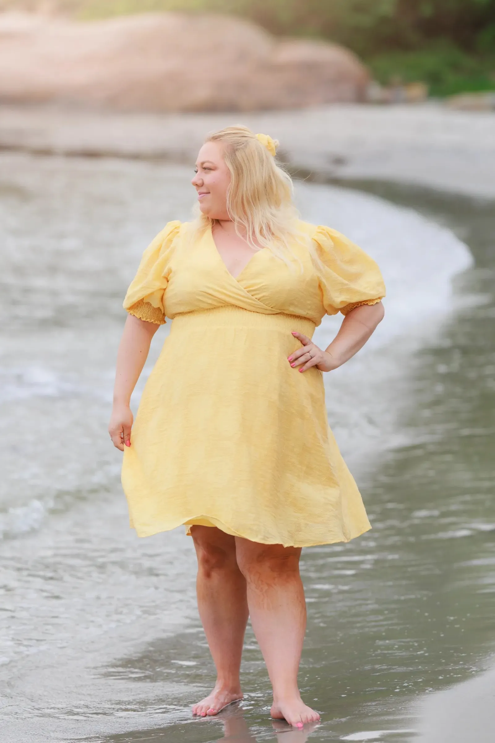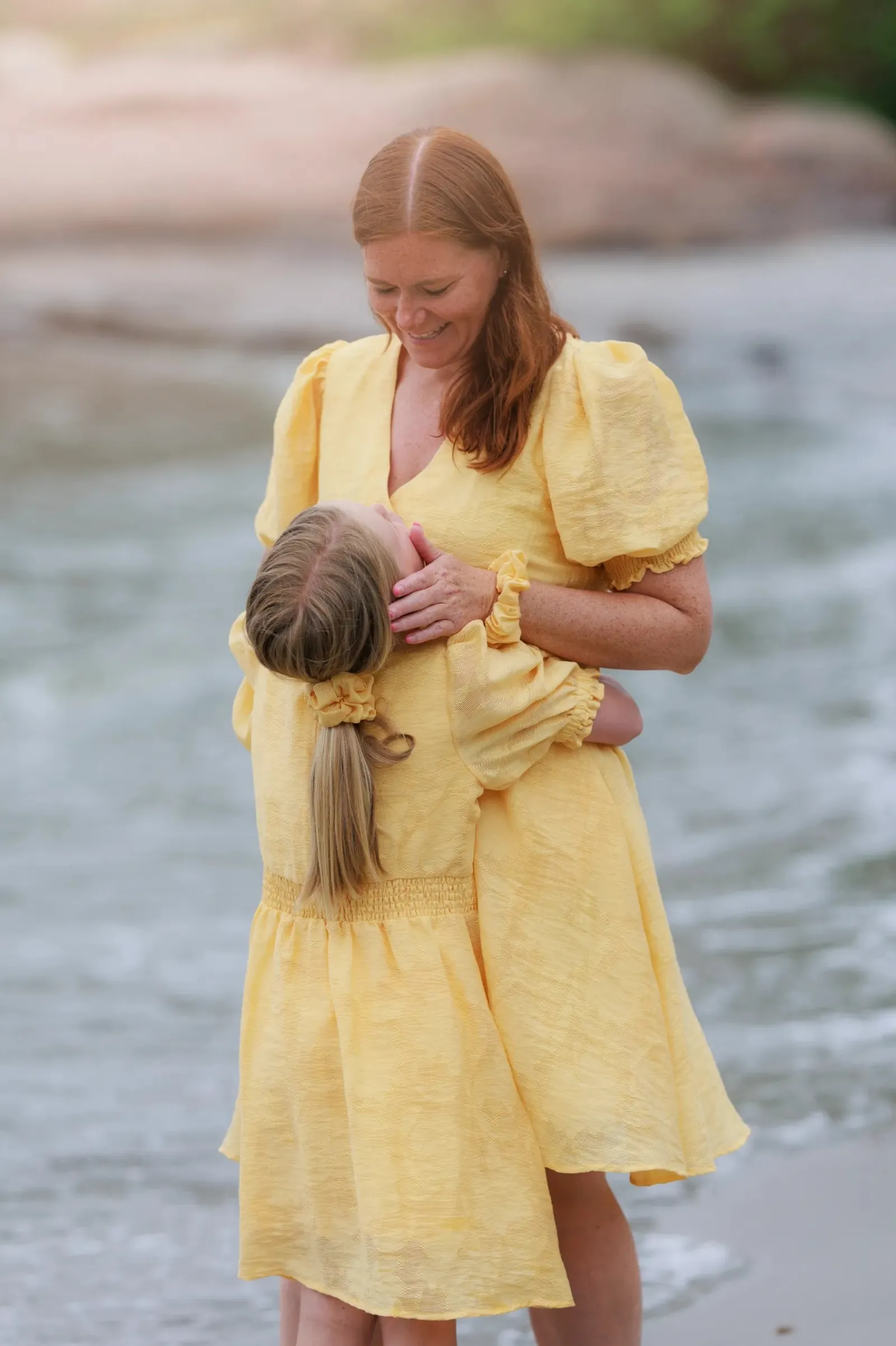 Belle Flower kjole i gul er en nydelig, kort sommerkjole. Stoffet har tekstur av blomster og oppleves luftig. Den har korte armer med puff og strikk. I midjen er det et behagelig strikk som gir en flatterende passform. På hver side av hoftene er det praktiske lommer. Passer like godt til hverdagen som til finere anledninger.