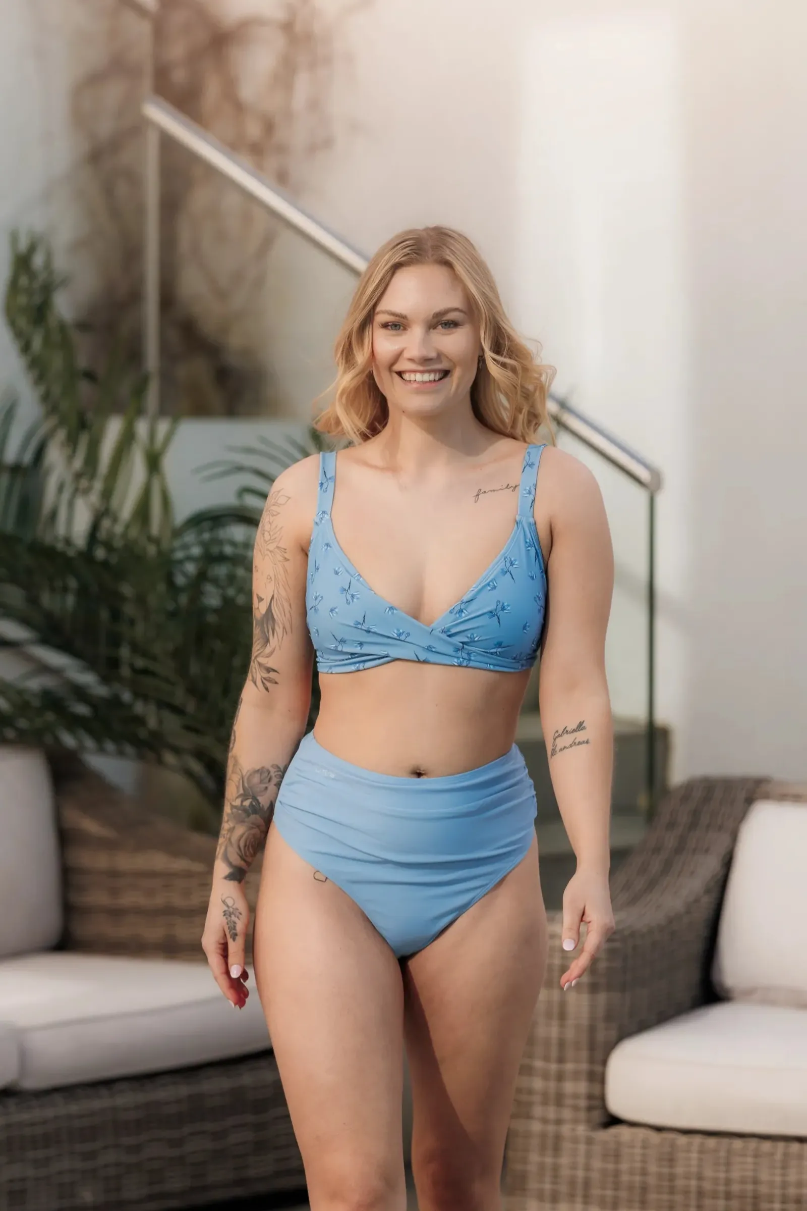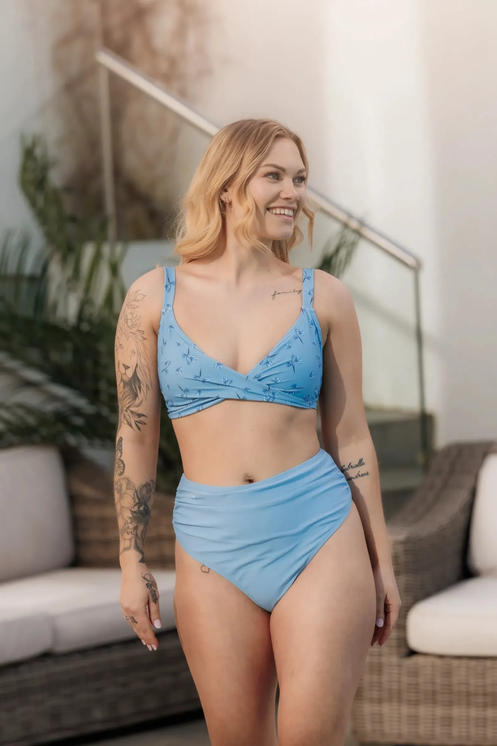 High waist bikini string er sydd med elastiske sømmer for at trusen kan til tilpasses best mulig kroppen uten å stramme. Masse stretch og hold. Fungerer også utmerket for gravide da stoffet er veldig bevegelig samtidig som den gir en hold in effekt. Elastisk scrunch på begge sider for å skape nydelige detaljer i stoffet.