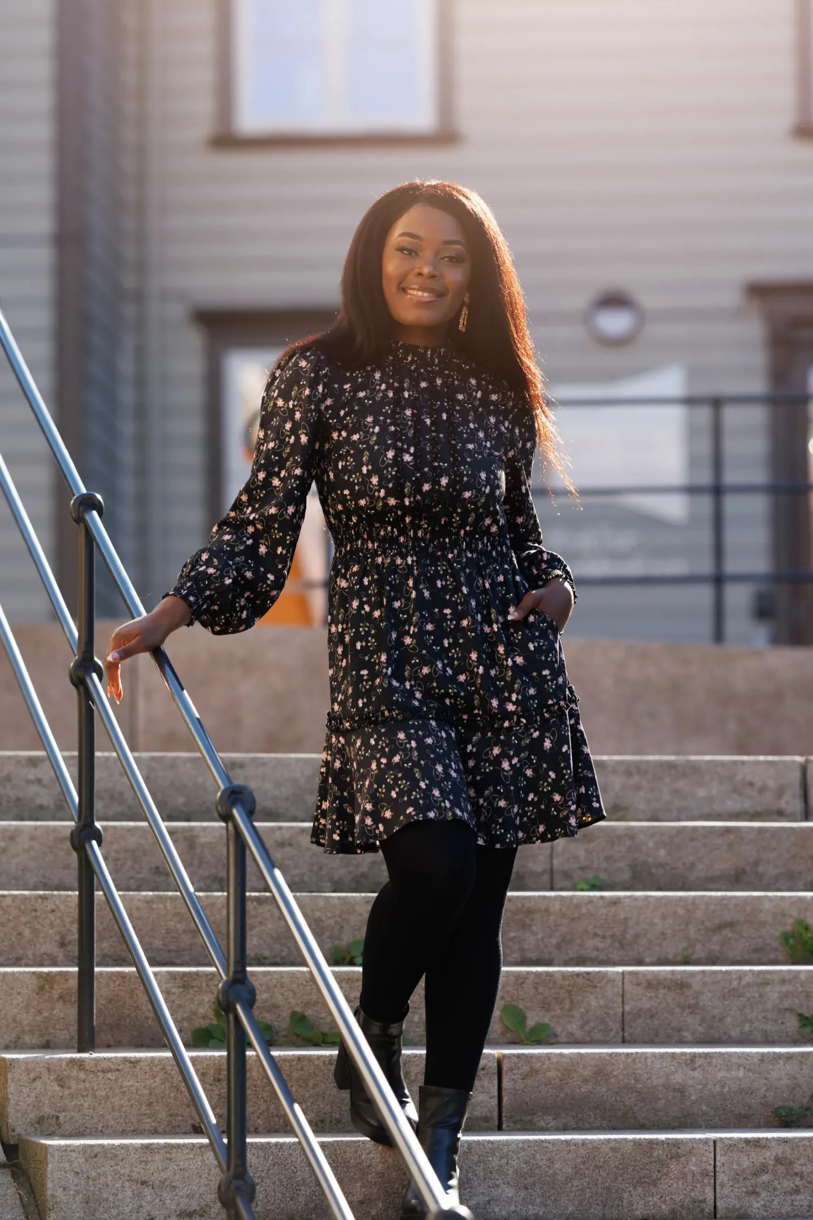 Denne kjolen er virkelig lekker med mange fine detaljer og nydelig mønster. Praktiske lommer på begge sider og elastisk midje. Julia er kjolen hvis du vil føle deg litt ekstra pyntet og trenger noe til finere anledninger.