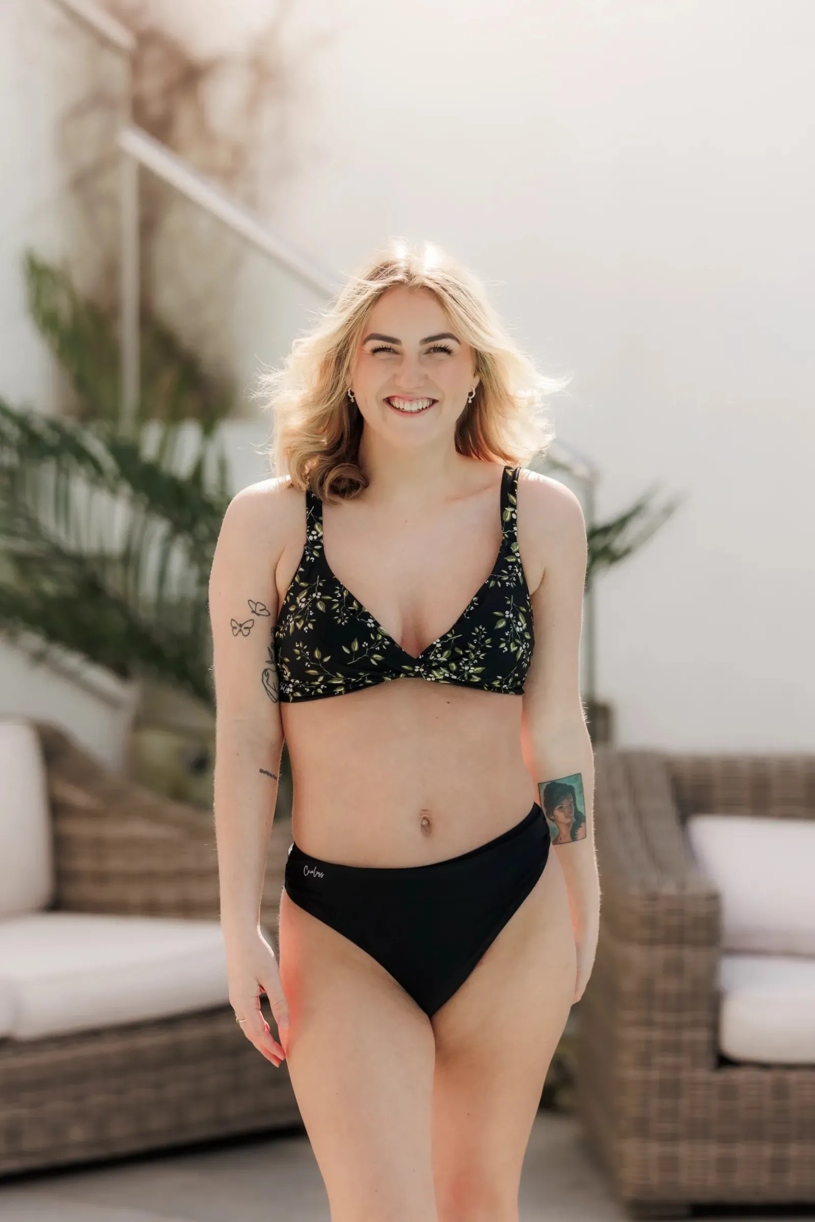 Mid waist bikini string er sydd med elastiske sømmer for at trusen kan til tilpasses best mulig kroppen uten å stramme. Masse stretch og hold. Fungerer også utmerket for gravide da stoffet er veldig bevegelig samtidig som den gir en hold in effekt. Elastisk scrunch på begge sider for å skape nydelige detaljer i stoffet.