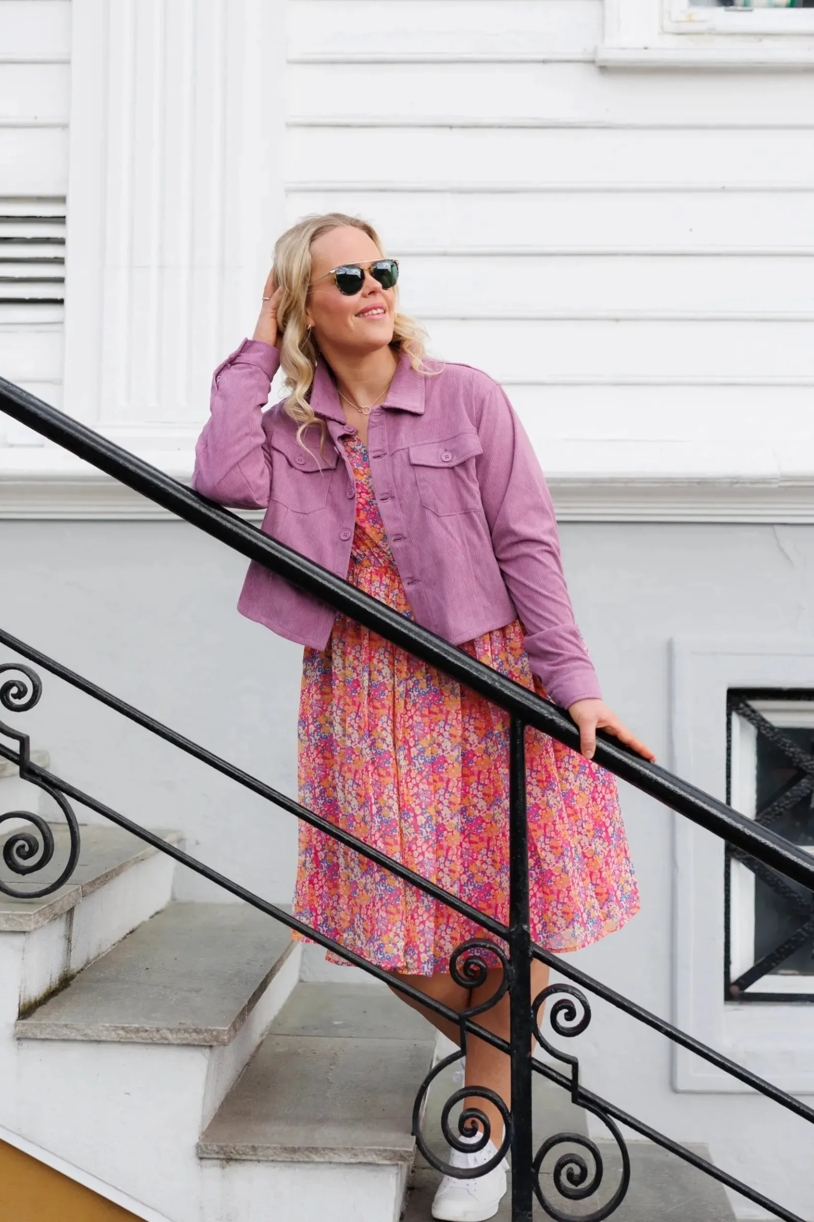 Dette er en superfin skjortejakke i kordfløyelslook som er myk, stretchy og behagelig. Perfekt til å slenge over kjoler og andre antrekk i vår!