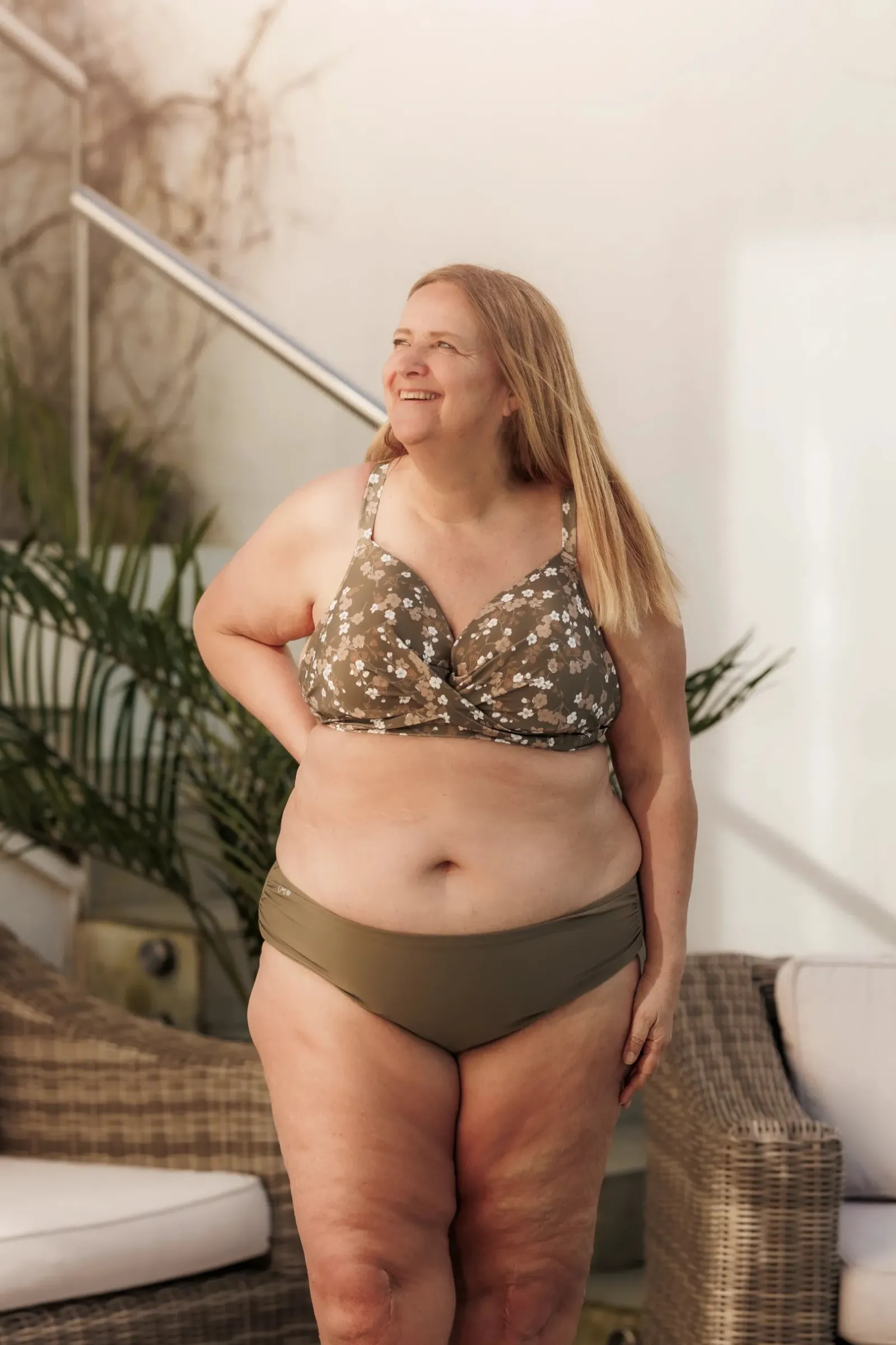 Roma er en bikini med spiler og fast padding med masse hold. Den har justerbare stropper og hemper i ryggen med ulike justeringer.