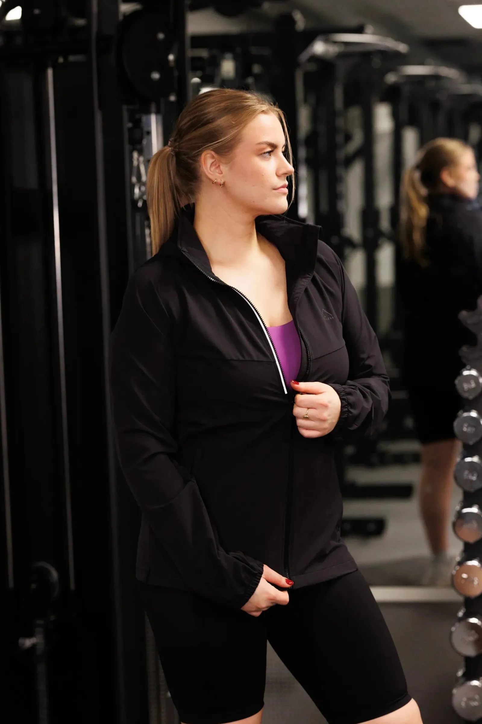 Dette er en komfortabel treningsjakke med masse kjekke og smarte funskjoner. Perfekt for aktivitet både ute og inne!