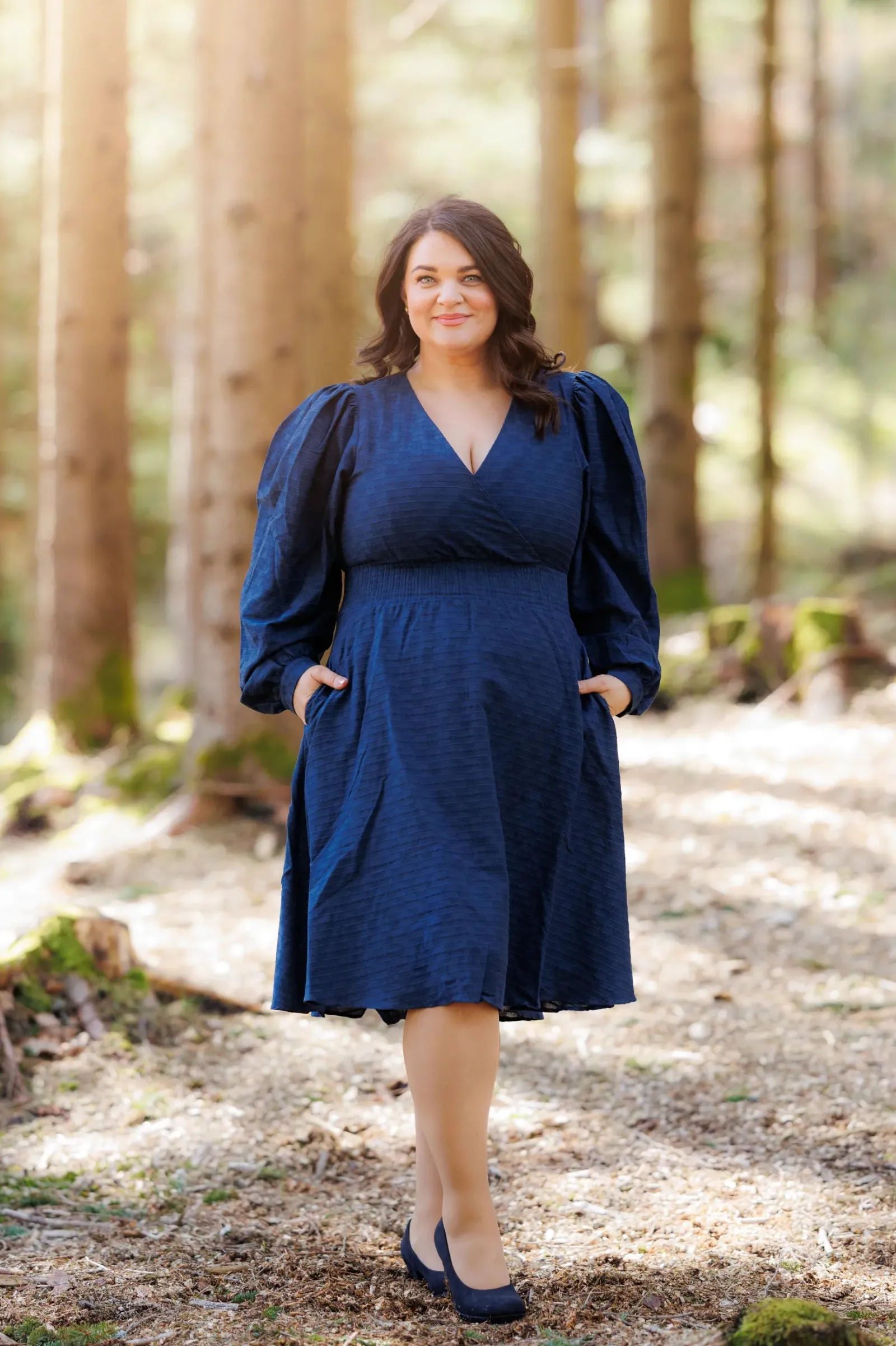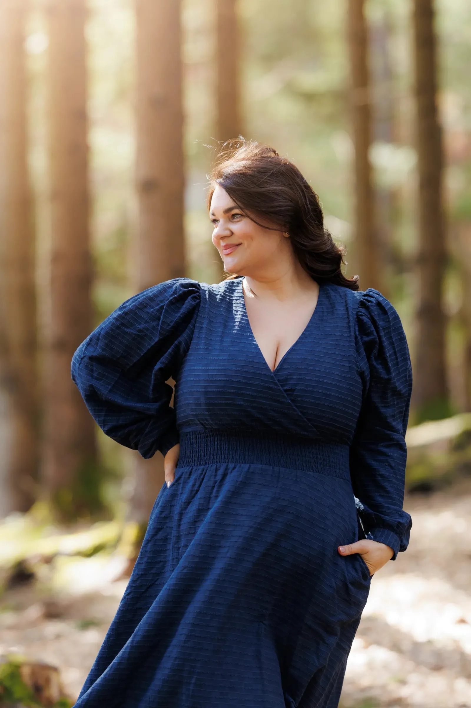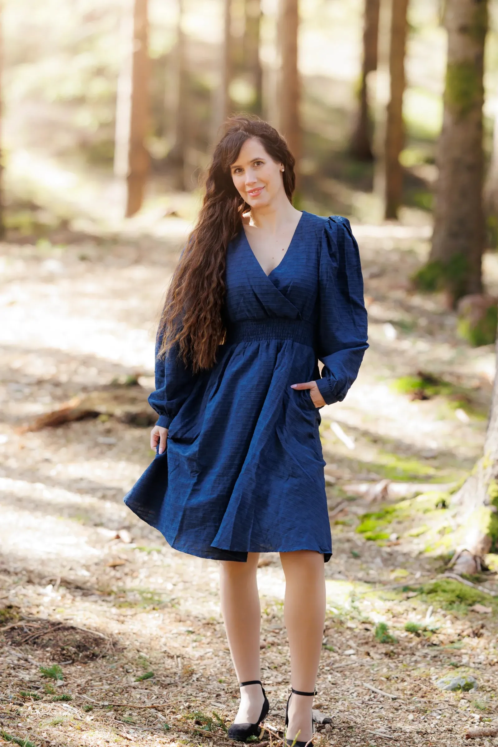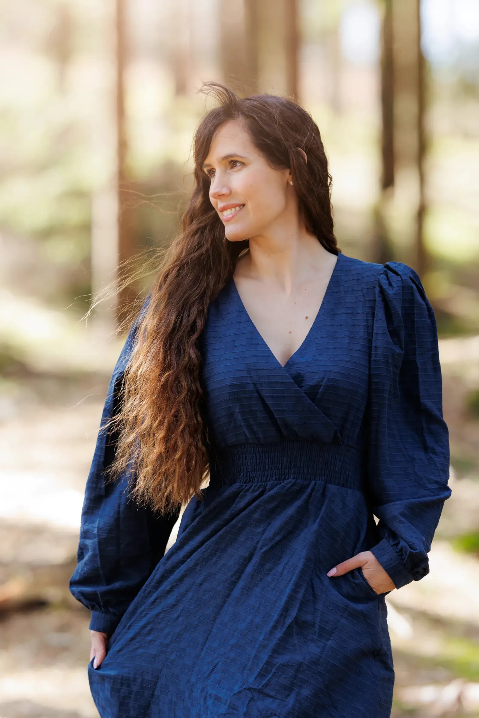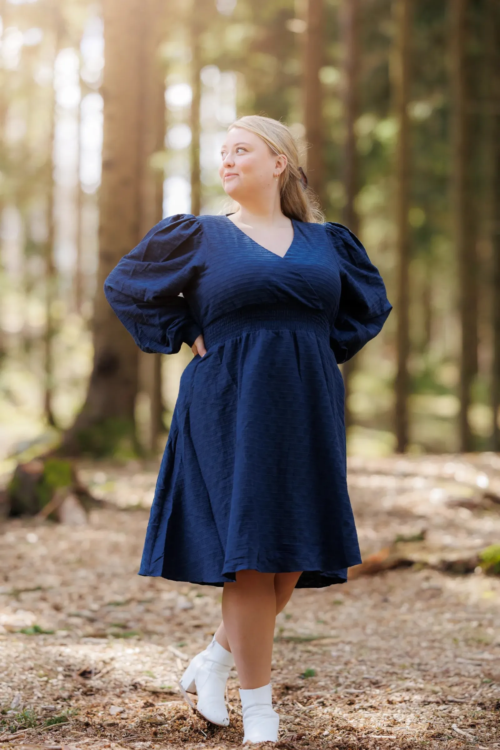 Belle kjole er den perfekte kjolen i mørkeblå til både hverdag og selskap. Denne kjolen er kort modell. Kjolen legger seg elegant på og har en behagelig strikk i livet, i tillegg til lommer på hver side.