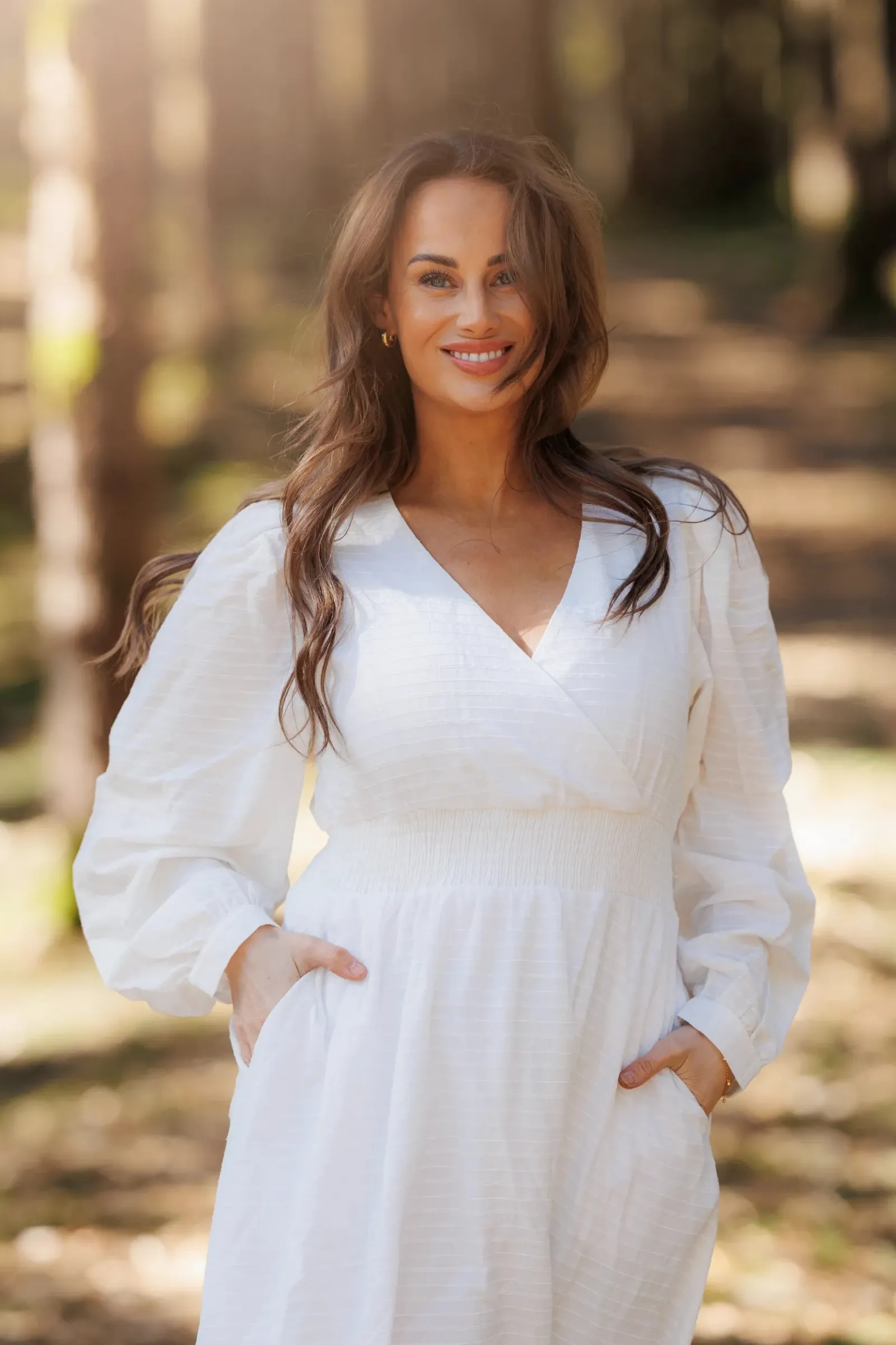 Belle maxikjole er den perfekte kjolen til både hverdag og selskap. Kjolen legger seg elegant på og har en behagelig strikk i livet, i tillegg til lommer på hver side.