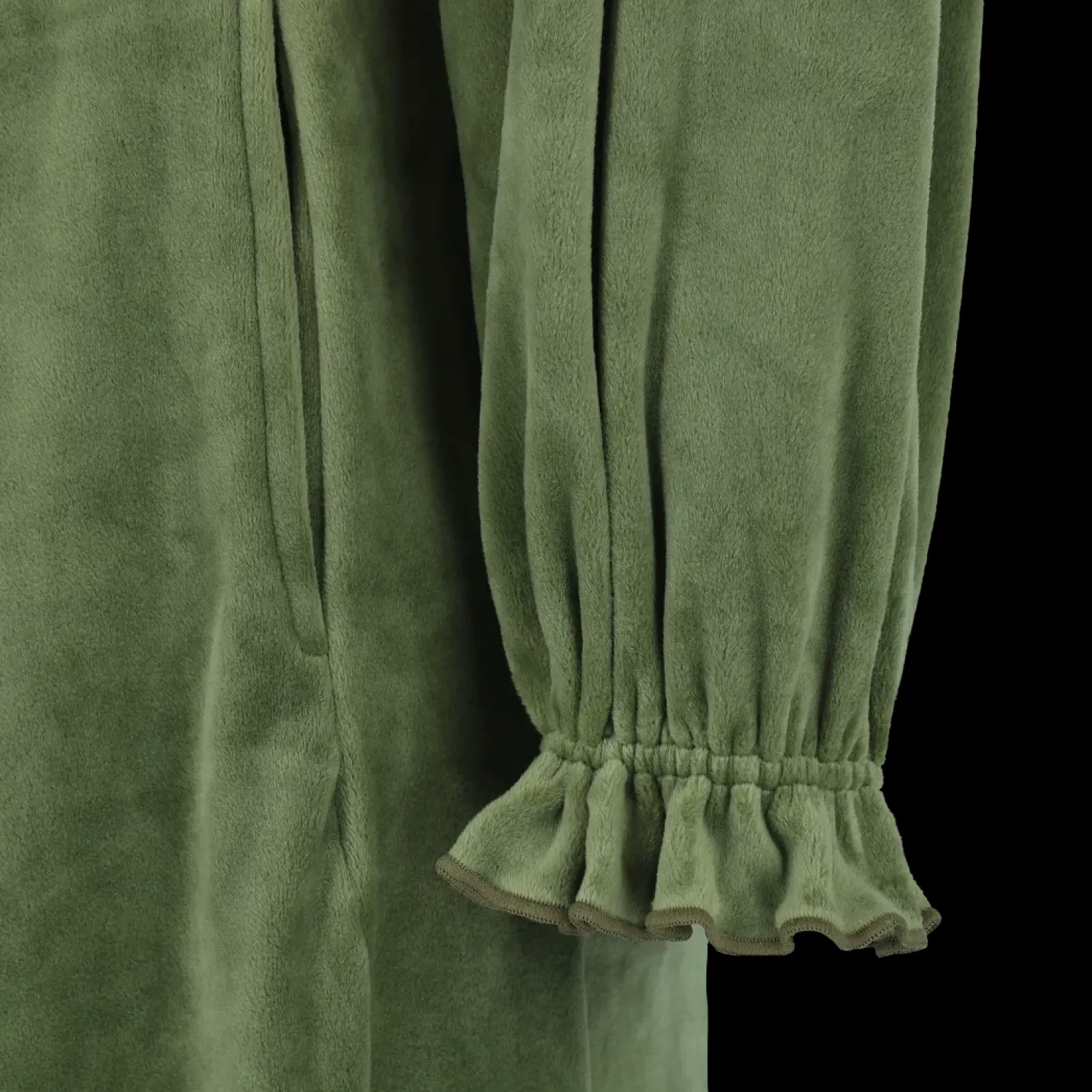 Den ermyk både på innsiden, og på utsiden. Ermene har pene detaljer som gir det lille ekstra. Med denne morgenkåpen er det også nok stoff så du slipper å bekymre deg for at den kanskje ikke går helt rundt deg. Gravid-vennlig.