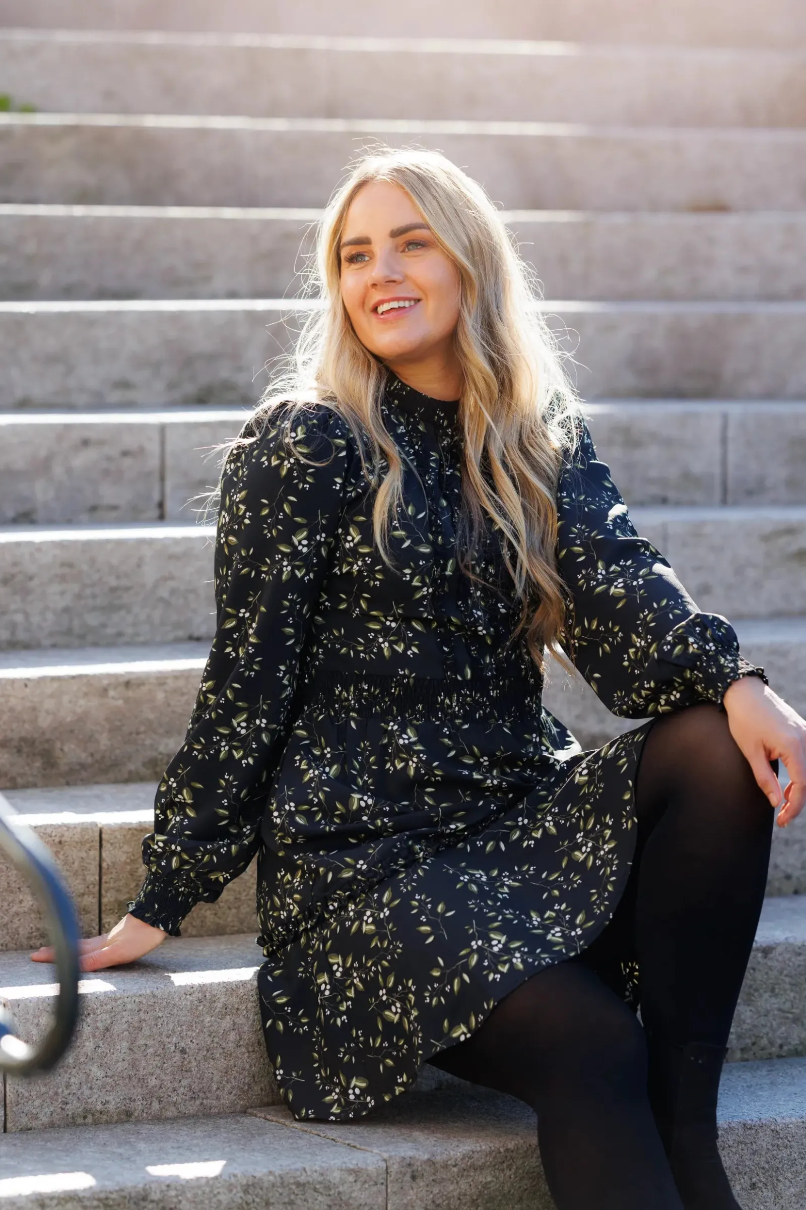 Denne kjolen er virkelig lekker med mange fine detaljer og nydelig mønster. Praktiske lommer på begge sider og elastisk midje. Julia er kjolen hvis du vil føle deg litt ekstra pyntet og trenger noe til finere anledninger.