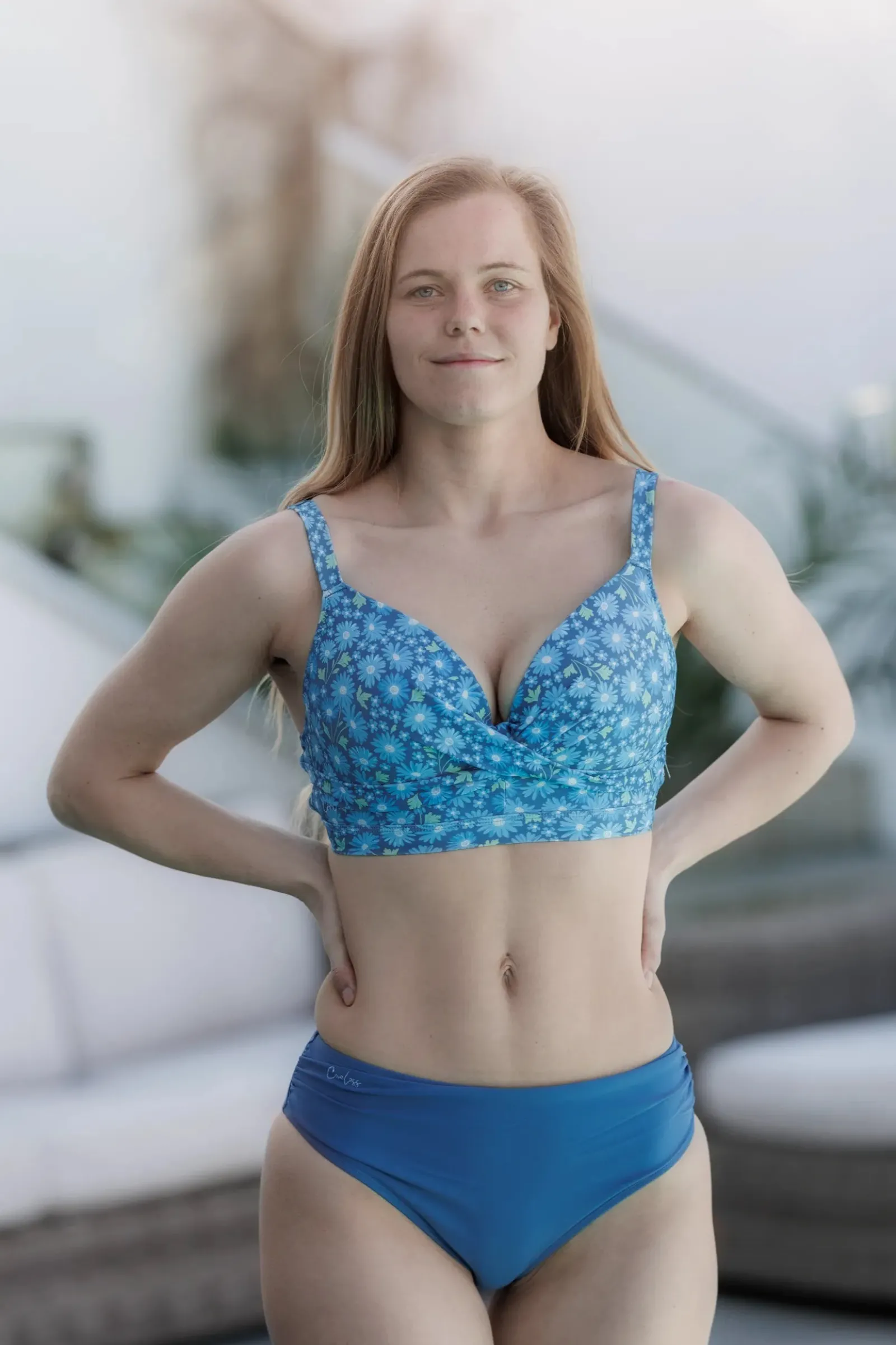 Roma er en bikini med spiler og fast padding med masse hold. Den har justerbare stropper og hemper i ryggen med ulike justeringer.