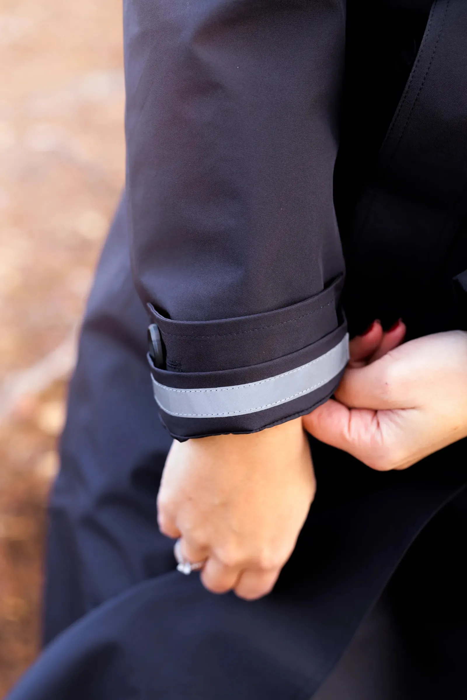 Jakken er vindtett og vanntett med 10.000 i vannsøyle. Ideell for regnværsdager. Den har teipede sømmer og refleksdetaljer.