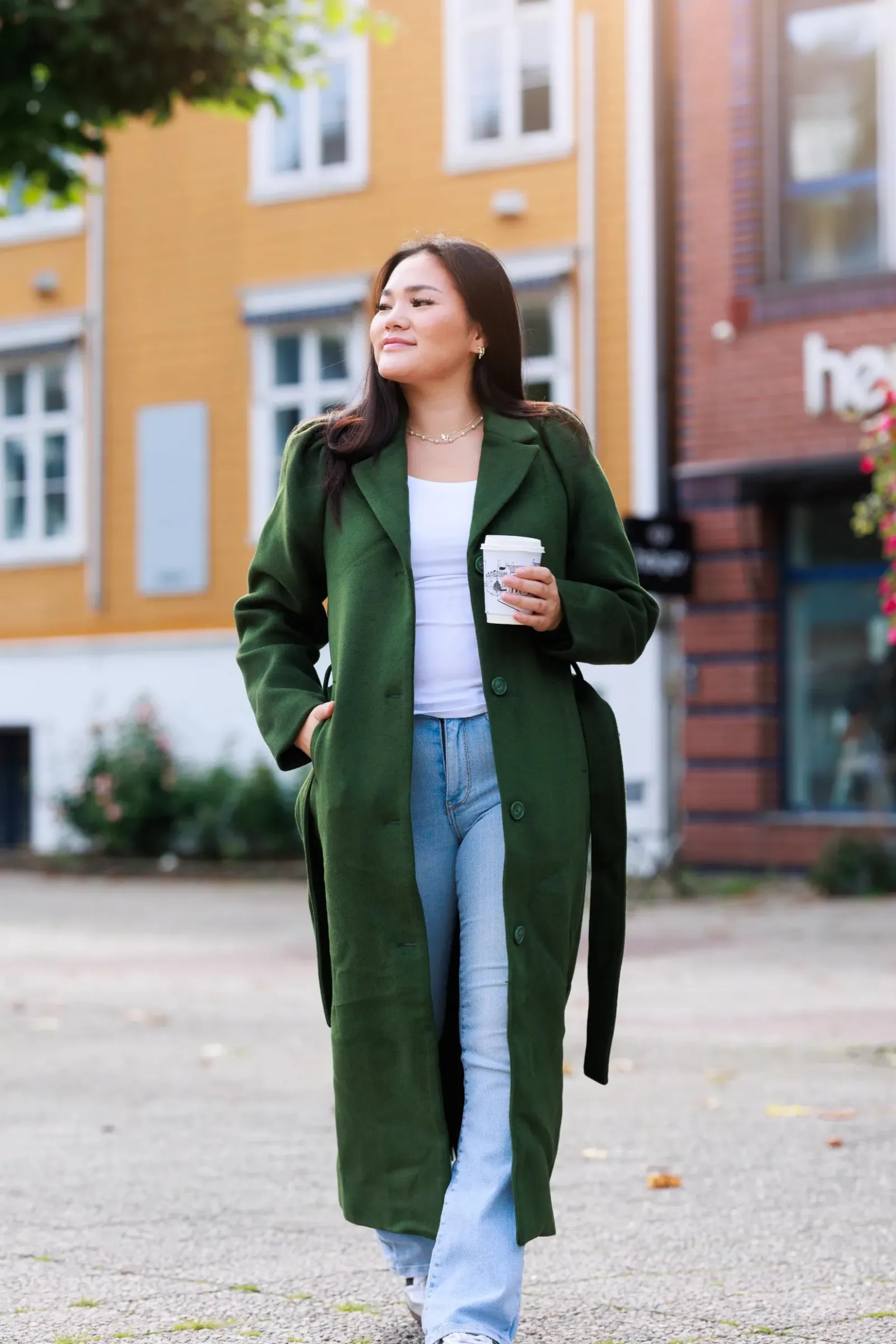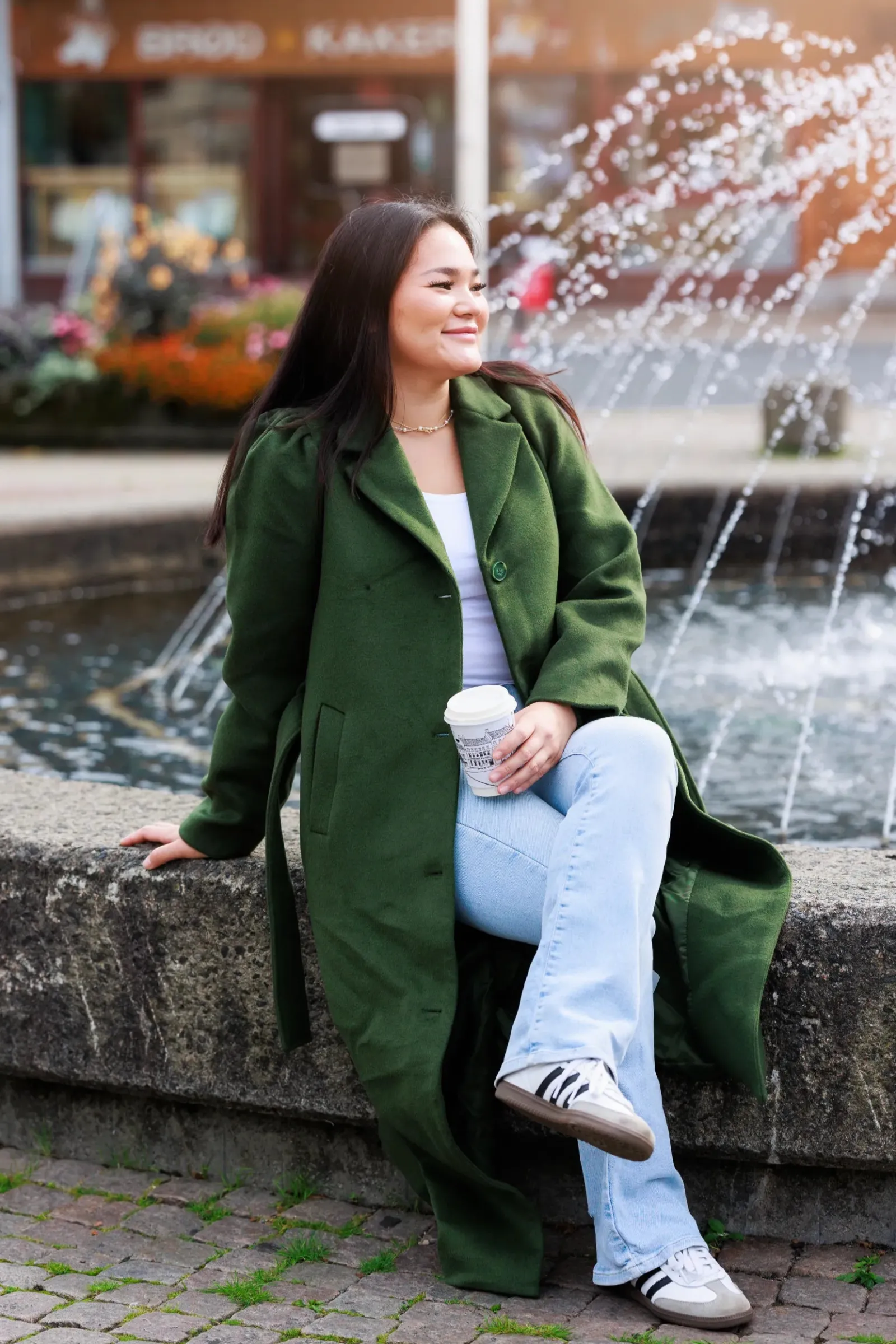 Sophie er en lang, feminin ullkåpe i god kvalitet. I denne vil du føle deg fin samtidig som du holder varmen. Passer like godt til hverdags som til finere anledninger.